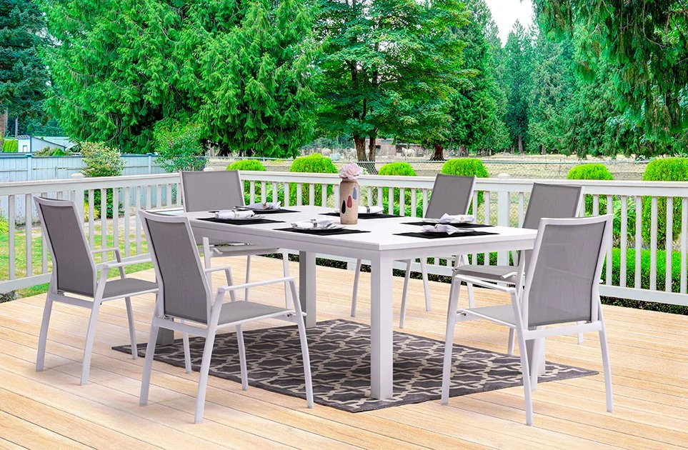 Willemstad sling elevates any outdoor dining area with pure lime sand precise symmetry. This beautifully crafted collection will inspire many festive experiences. It features durably tested sling fabric that flexes and offers continuous support.